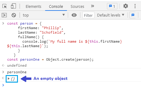 This is because we have not defined any properties and methods inside personOne object. However, personOne inherits properties and methods from its prototype object - the person object. As a result, personOne.firstName logs in Phillip to the console.
