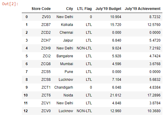 Below, we have read an Excel file into a DataFrame.