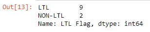 Let's count the unique values in the LTL Flag column:
