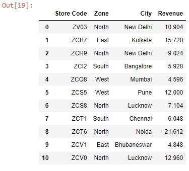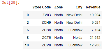 Let’s say we want to filter all the stores located in the North zone. We can do so using the query() method as shown below: