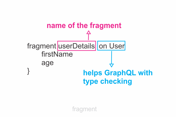 We define fragments by using the fragment keyword followed by the name of the fragment. Fragments are selection sets on specific types. Therefore, in the definition, we must also specify the type associated with the fragment.