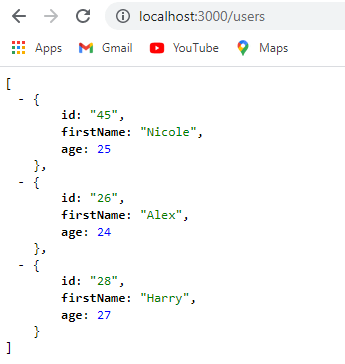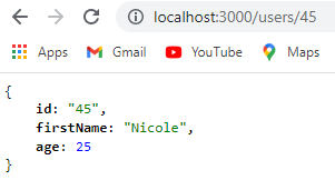 If we go to http://localhost:3000/users/45, we get a single user with an id of 45.