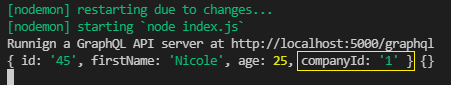This is the first time, we have made use of the parentValue argument on line 25. The companyId is available inside the parentValue argument. We can prove this by logging the value of parentValue in the console.