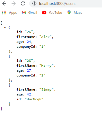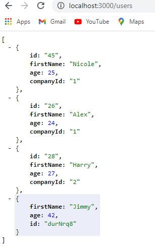 We have successfull deleted the user with an id 45. We can check that by going to http://localhost:3000/users.