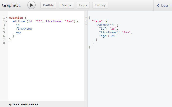 Our editUser() mutation was executed successfully. Try changing other properties of the user, and you should be able to edit the details without any problem.