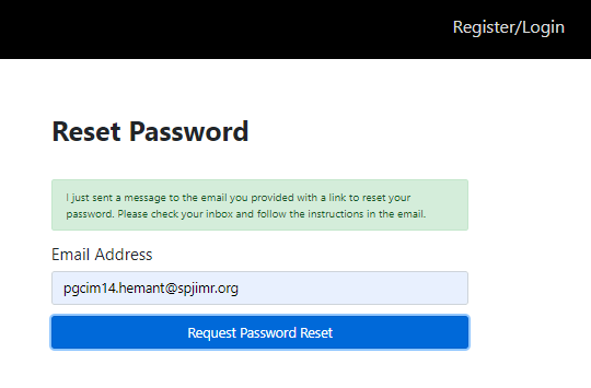 When the user enters the email address and clicks on the Request Password Reset button, we show a message saying that we have sent a password reset link to his/her email address.