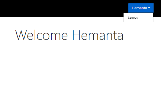 After the user logs in using his/her credentials, we show a welcome page. We also display the first name (as filled in the registration form) of the user in the header.