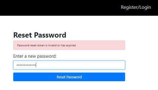 The password reset link that the user receives in his/her email address expires in an 1 hour (the token expiry time is configurable.). Therefore, if the user tries to reset the password after 1 hour of receiving the password reset link, we show an error message.