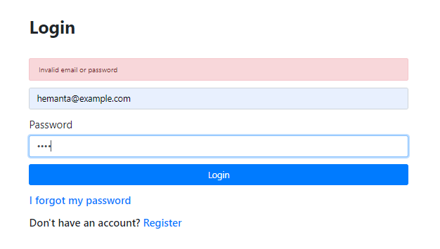 If you try to log in using the wrong email address or password or both, you would see an error message as shown below.