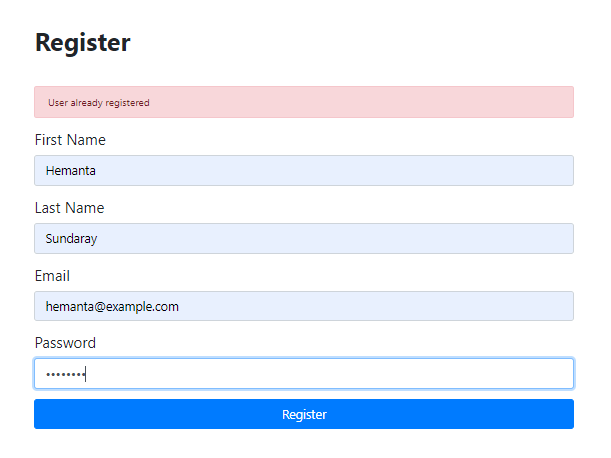 If you try to register for the second time using the same email address that you used to register the first time, you will receive an error message as shown below.