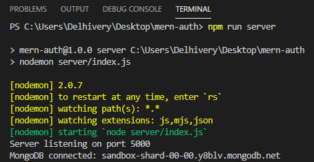 PS C:\Users\Delhivery\Desktop\mern-auth> npm run server
