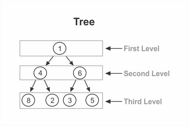Trees are said to have levels. Each level is a row within the tree. Our example tree has three levels: