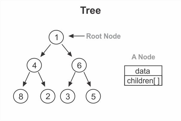A tree is a node-based data structure. A node holds data and a reference to all of its children.