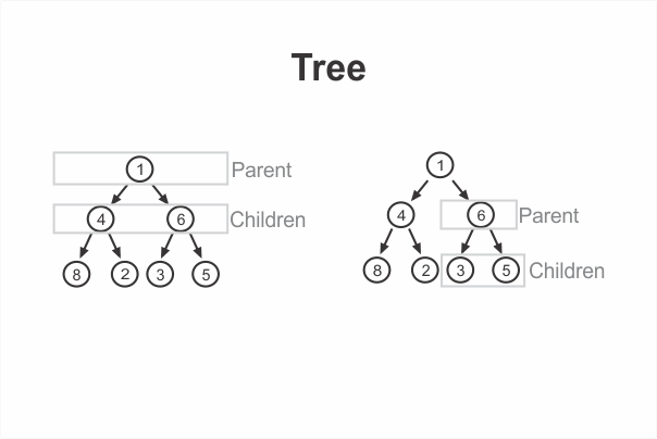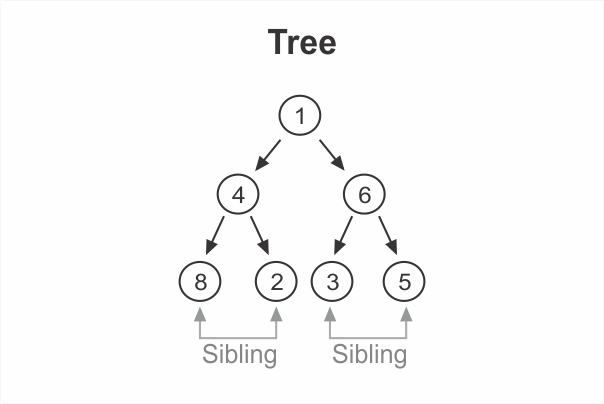 In our example, we’d say that the 1 is a parent to 4 and 6. Conversely, 4 and 6 are children of 1. Similarly, 6 is a parent of 3 and 5, and 3 and 5 are children of 6.