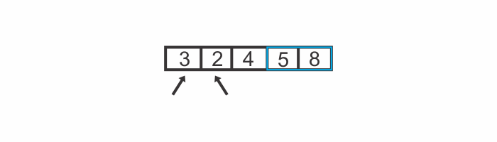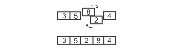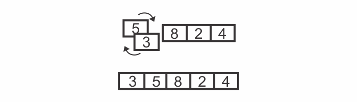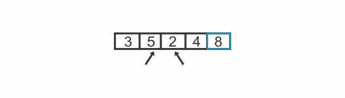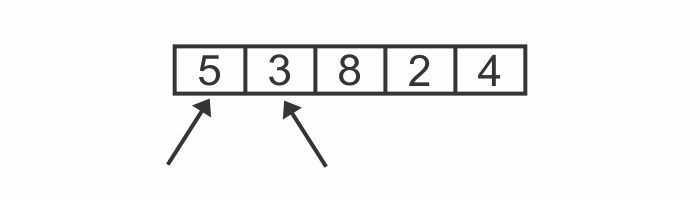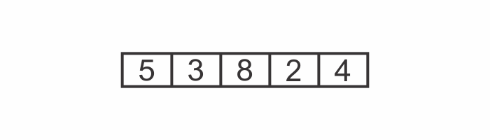 Let’s say we want to sort the array [5, 3, 8, 2, 4] and produce an array that contains the same values in ascending order.