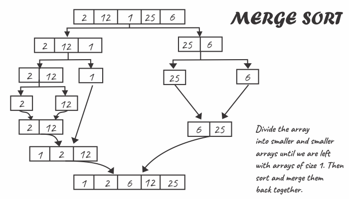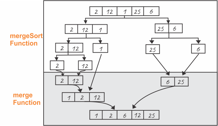 console.log(mergeSort([2, 12, 1, 25, 6]));