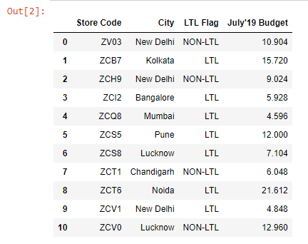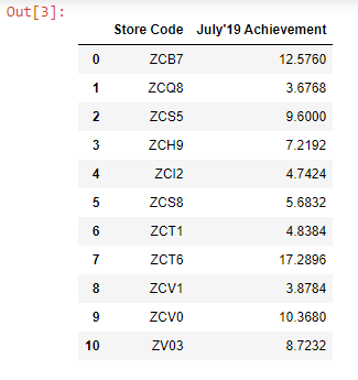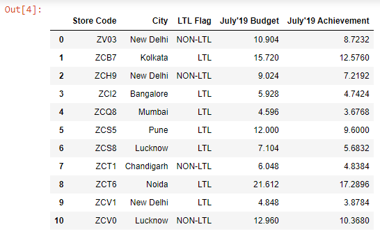 Our goal is to join the July’19 Achievement column from the budget2 DataFrame to the budget 1 DataFrame.