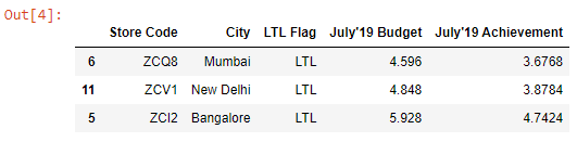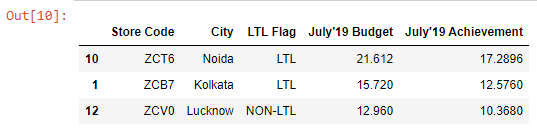 Let’s say we want to find out the top 3 stores with the highest July’19 budget.