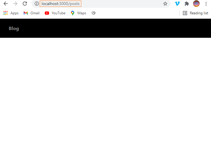 With this, the navigation bar is now ready. When we click on the Blog Link, we are taken to the /posts route, where we will render the Posts component (which we haven't created yet).