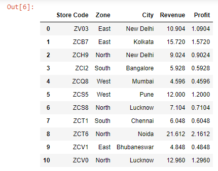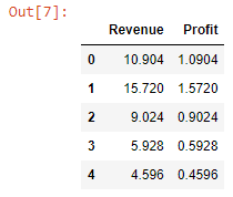 We can select only the columns that contain numeric values (Revenue & Profit) using the select_dtypes() method and passing the string number to the include parameter.