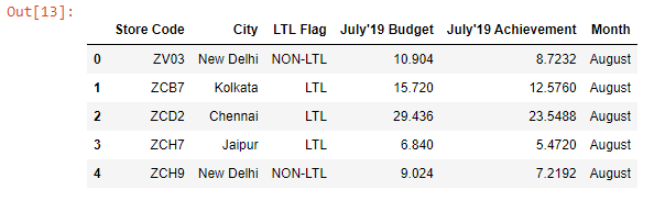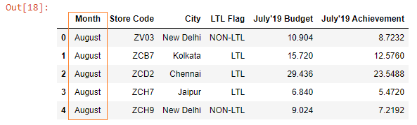 We can see that the Month column has been added at the index position 0 and the entire column has been populated with the value August.