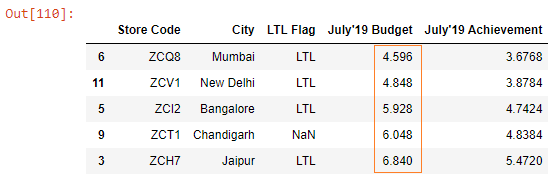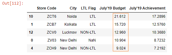 We pass the name of the column we want to sort to the by parameter. And we pass inplace = True to make permanent changes in the budget DataFrame.