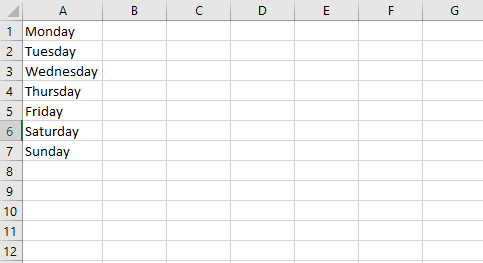 Let's say that the elements that we added to the dayofweek array are there in a range, as shown below:
